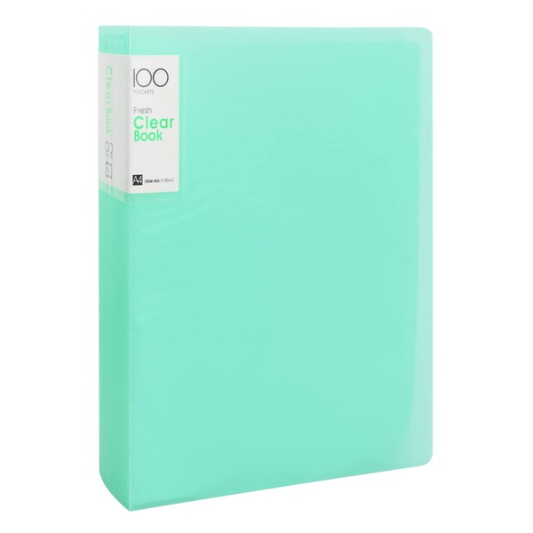 A4 Display Book with Transparent Pockets, 100 Pockets, A4 Presentation Folder, Display Folder with Transparent Sleeves, A4 Presentation Book for Reports, Music Sheets, Brochures (Green)