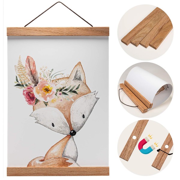 - With the magnetic wooden poster hanger, hanging up children's artwork or self-painted drawings becomes a pure pleasure. In no time at all, you can change the pictures and give the room a makeover
