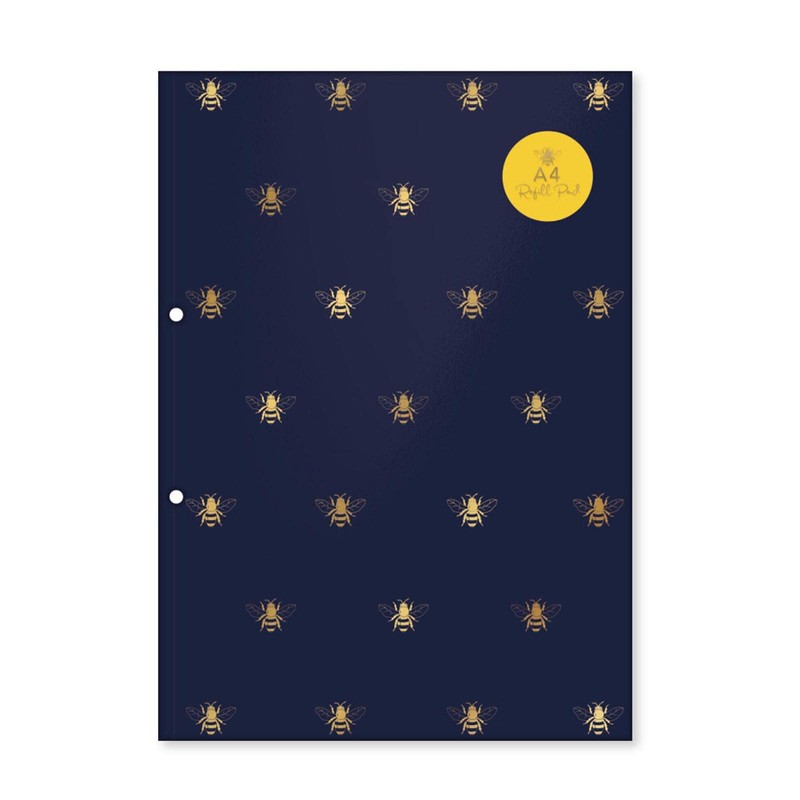 A4 Refill Pad Notepad Notebook Busy Life Bee Design Navy Gold Colour 100 Sheets