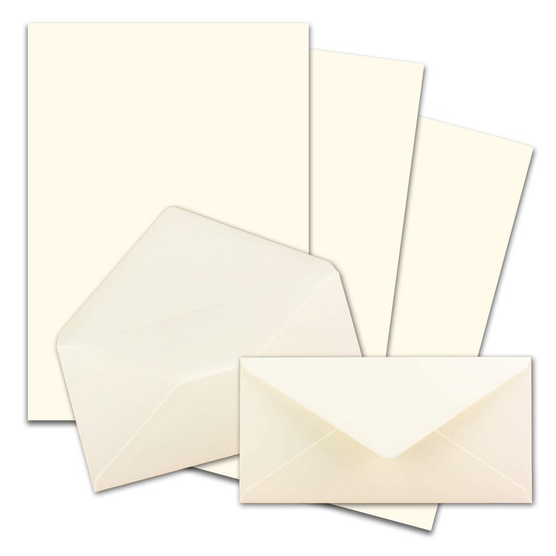 A4 Writing Paper Sets with DIN Long Envelopes, Wet Seal, Natural White, Matte Writing Paper with Envelopes, Pack of 25 FarbenFroh by GUSTAV NEUSER
