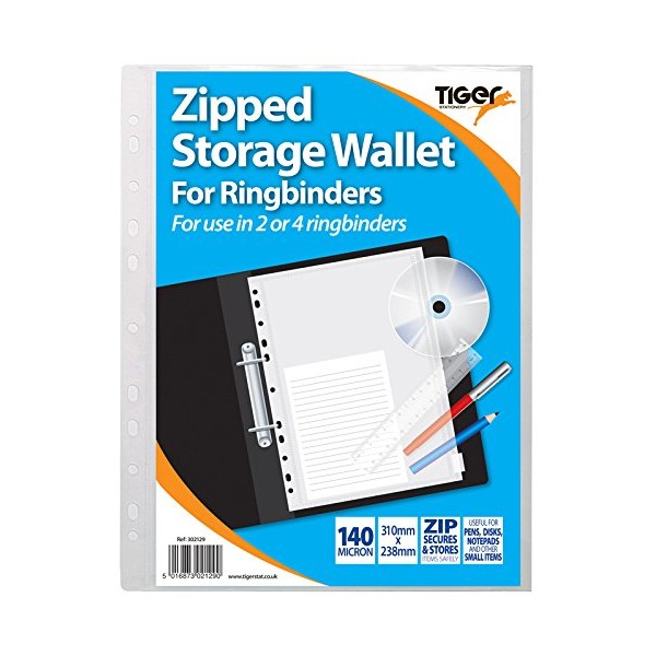 A4 Zipped Stud Wallet Ringbinder Clear Filing Expanding Storage Folders x 5