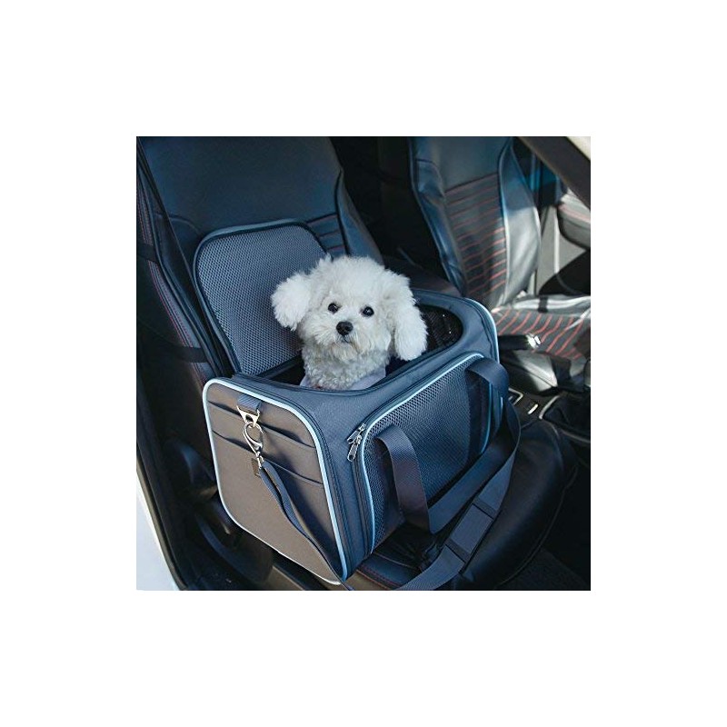 **A4Pet Foldable Soft Airline Approved Pet Travel Carrier** This soft-sided travel pet carrier was designed for dogs and cats up to 18 lbs. It will help your pet arrive safely and comfortably when traveling by plane or car or for routine trips to the vet.