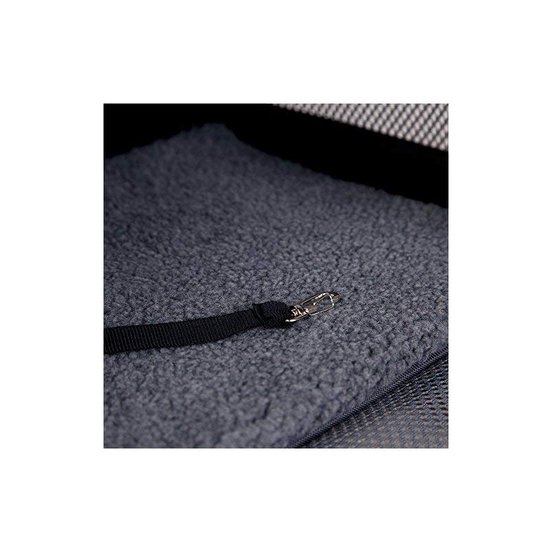 **Comfortable Style** \- It comes with a multifuctional cushion made by cozy fleece and durable oxford fabric, please accord to the air temperature to decide to use which side.- Mesh ventilation on sides and top not only provide adequate airflow, but also easy viewing--perfect for your pet to look out and for you to check on your pet.- Two entrances, easy to access. Unzip top entrance, pet can poke their head out.