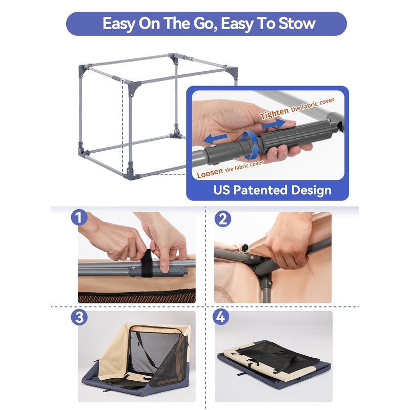 A4Pet Portable Dog Crate, Travel Dog Crate - Lightweight, Durable and Foldable Dog Crate with 3-Door, Adjustable Stainless Steel Frame, Soft Sided Collapsible Dog Kennel