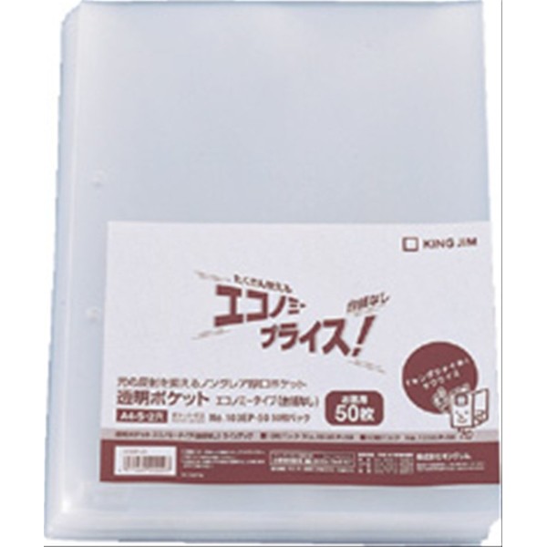キングジム ファイル 透明ポケット エコノミー 台紙なしA4S 103EP-50 50枚入り