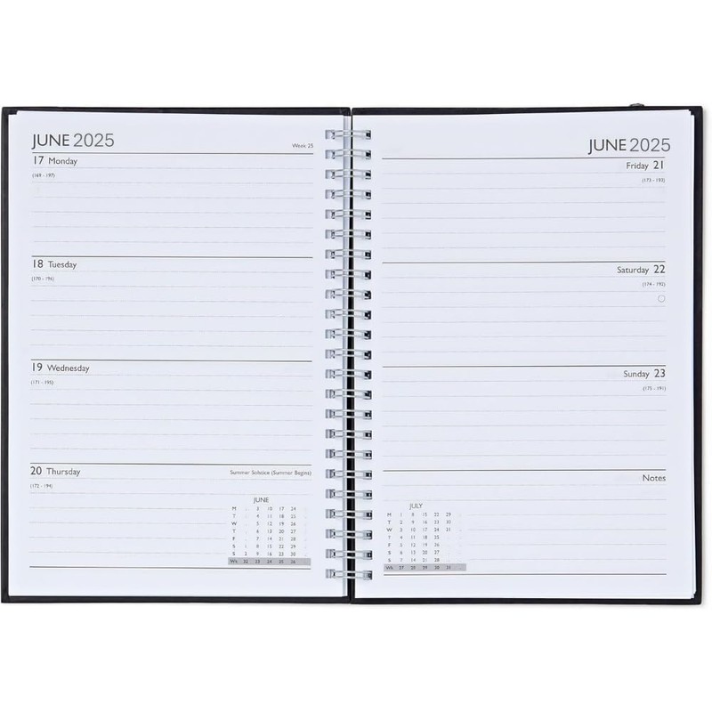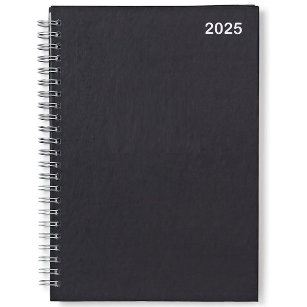 A5 2025 Diary Week To View Black Cover With Silver Wiro Binding - Executive Edition