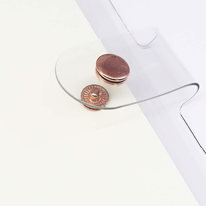 高品質の透明PVCバインダーカバー、スナップボタン留め、ステンレススチール製ラウンドリング。以下の特徴: