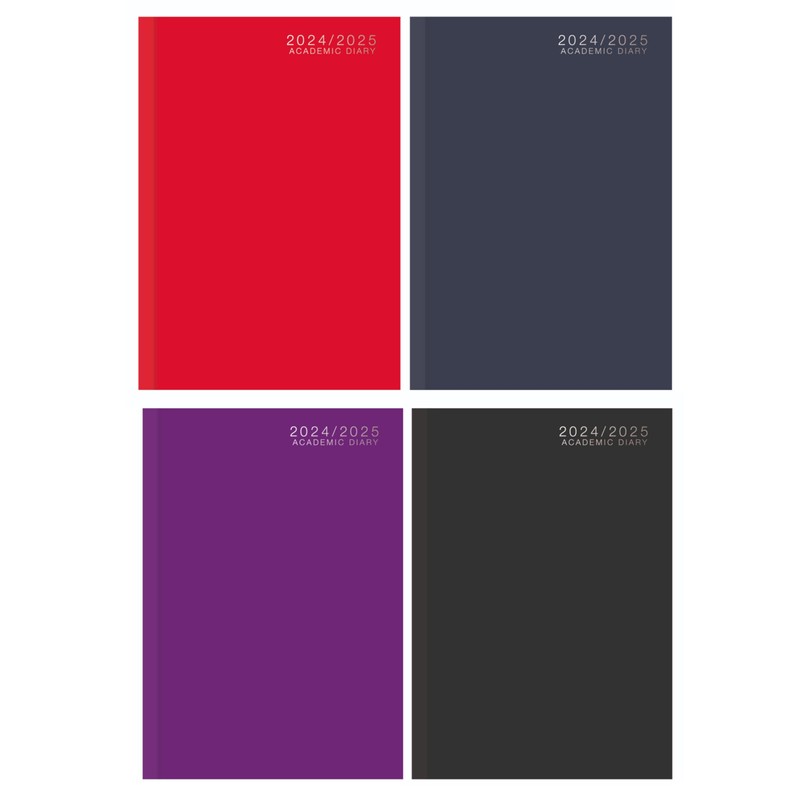 A5 Academic Diary 2024-2025 Week to View Hardback Case Bound - ASSORTED