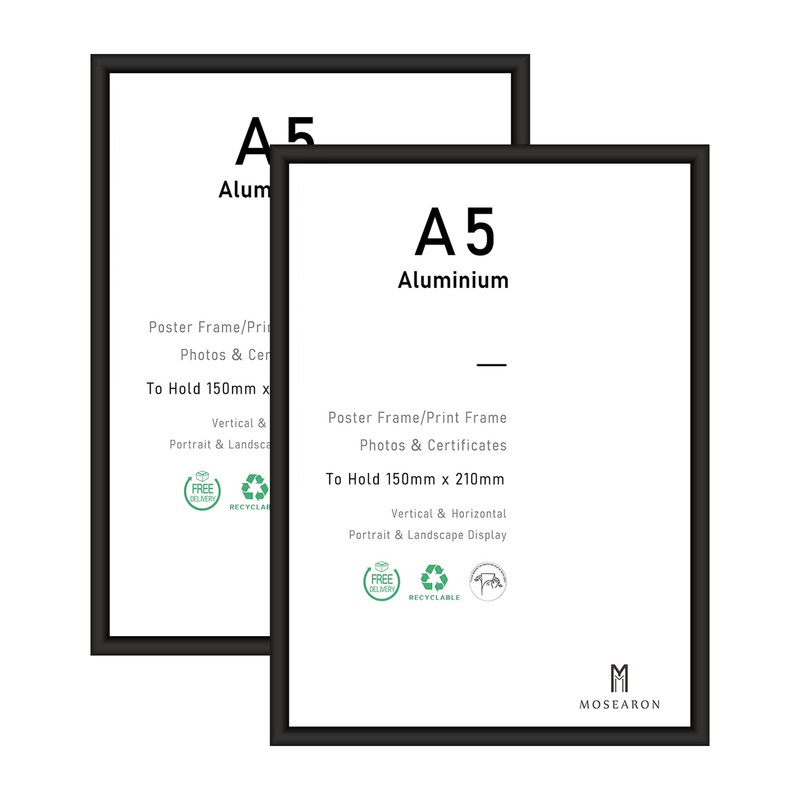 A5 Black Frame Aluminum Metal Poster Frame with Plexiglass Front Photo Picture Frame for Wall Mounted
