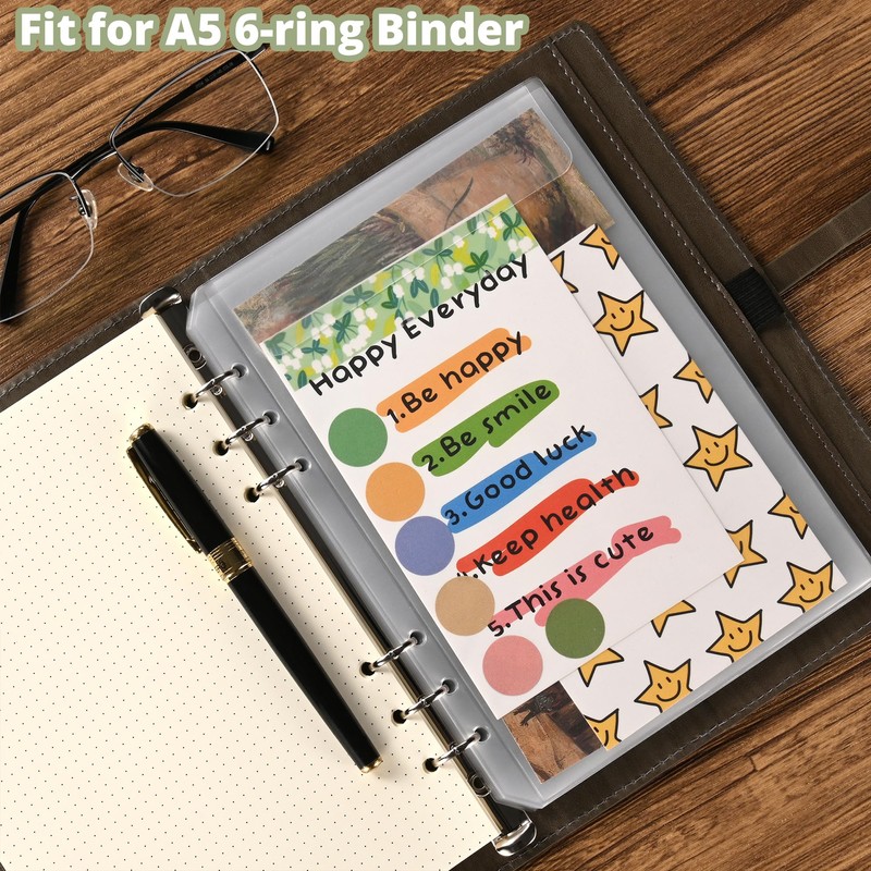 - 6 Hole Punched, Only fit A5 6-ring binder. (MUST BE A5 6-ring, other types like 3-ring and 7-ring binders are NOT COMPATIBLE)