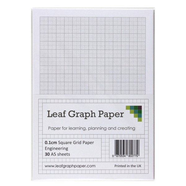 A5 Graph Paper 1mm 0.1cm Squared Engineering - 30 Loose-Leaf Sheets - Grey Grid