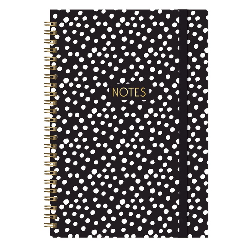 - SLYLISH & PRACTICAL: This trendy black hardcover notebook features a black and white polka dot design, with a black elastic closure to keep contents secure.