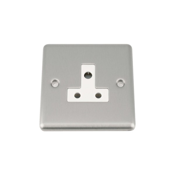 A5 Round Pin Plug Socket 5 Amp - Satin Matt Chrome Classic - White Insert
