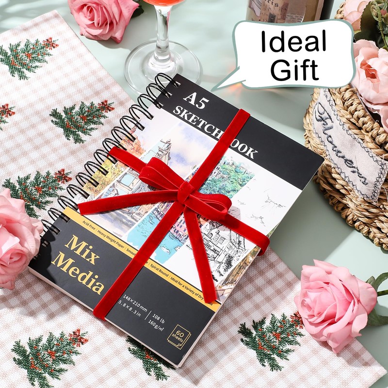 A5 Sketch Book, Mixed Media Sketchbook 60 Sheets / 120 Pages, 160GSM, Spiral Artist Sketch Pad for Sketching, Drawing, Pastel, Acrylic, Craft