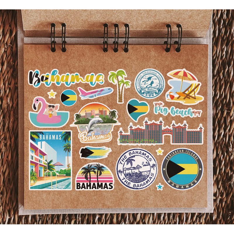 A5 Sticker Sheet Bahamas Vinyl Stickers - Caribbean Country Landmarks Holiday Stamp Summer Map Flag Travel City Luggage Scrapbooking #79027
