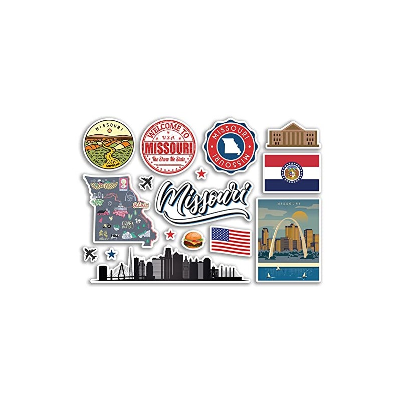 A5 Sticker Sheet Missouri Landmarks Vinyl Stickers - America States USA American Airport Stamps Skyline Flag Map Travel Holiday Scrapbooking City Luggage #79180