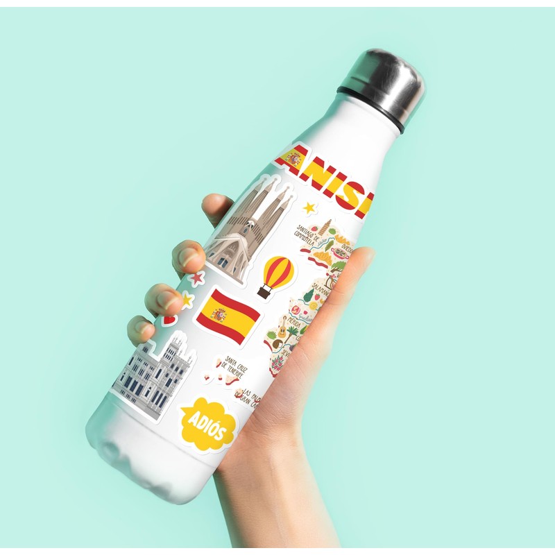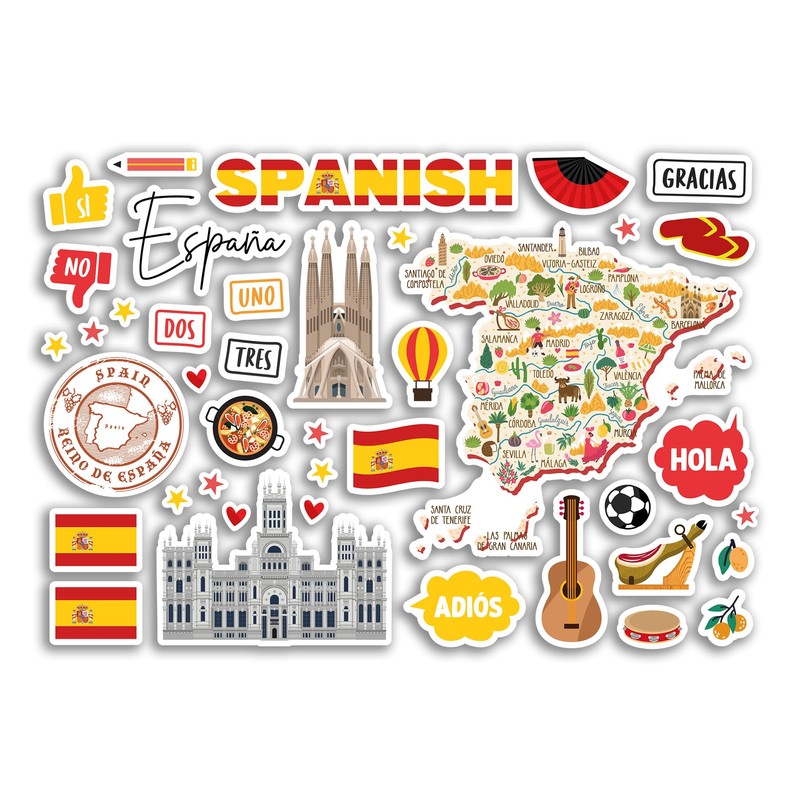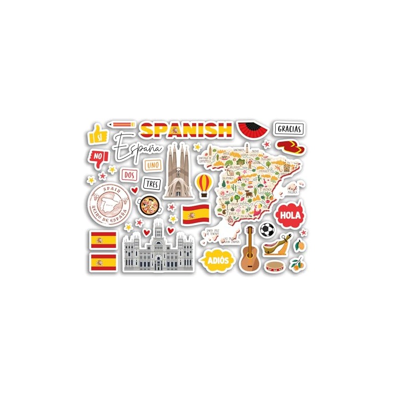 A5 Sticker Sheet Spanish Vinyl Stickers - Spain Espanol School Book Flag Map Landmarks Students Project Travel Holiday Scrapbook #81080