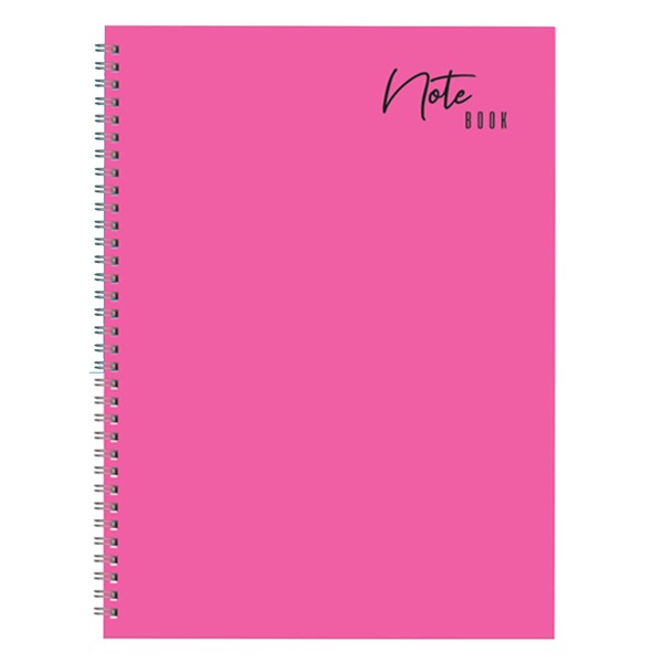 - Pink cover with black twin wire binding on the long edge