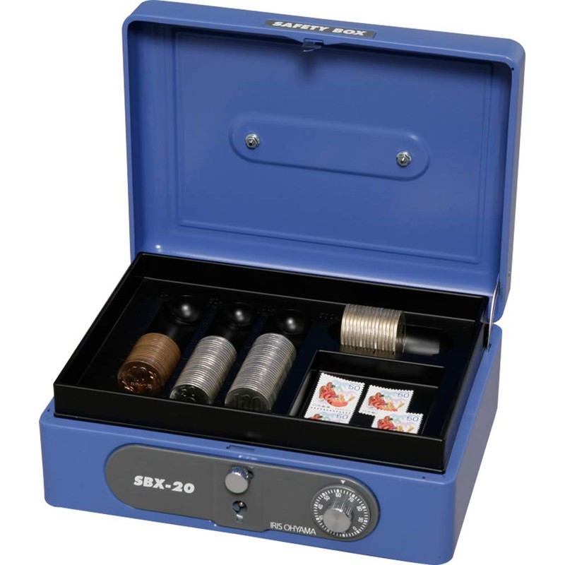 アイリスオーヤマ 金庫 手提げ金庫 ダイヤル式 ダブルロック A6 コンパクト SBX-A6 ブルー