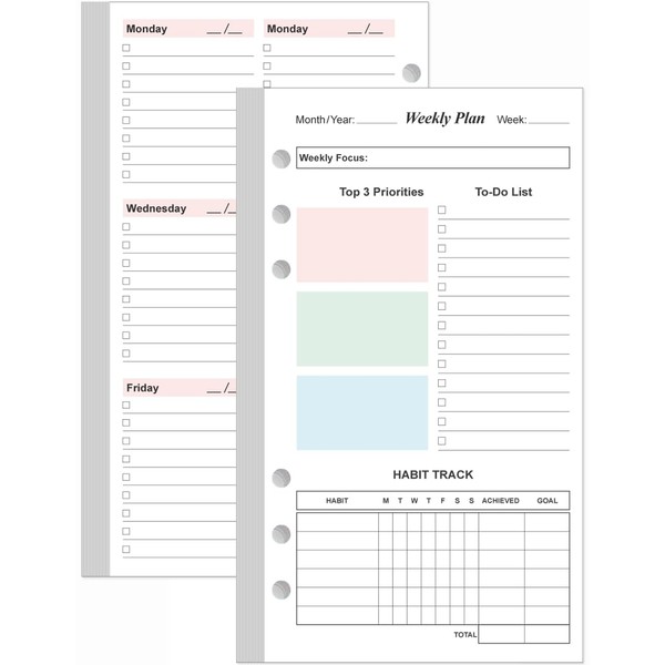 - MAKES YOUR LIFE PRODUCTIVE - This planner refill page includes space for weekly focus, 3 top priorities,9 to do list, habit tracker, and habit tracker together for daily affairs. Track healthy habits for each week and use the checkbox as a visual reminder. This to do list planner refill con help you to save time and achieve your goals.