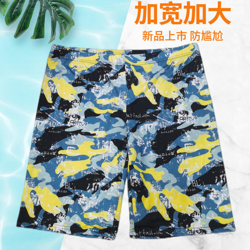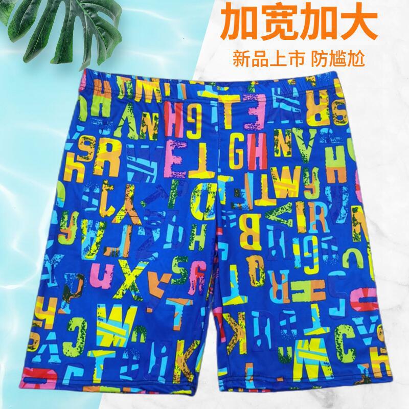 A717 Plus Size Men's Drawstring 5-Point Long Leg Swim Trunks (Recommended 90-120kg) Option -3 10ea