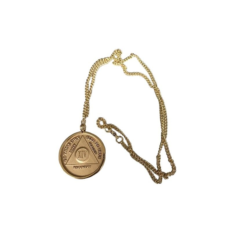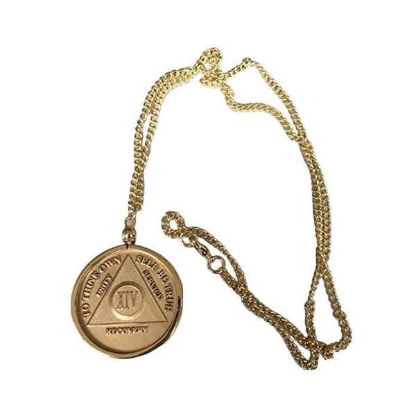 AA Alcoholics Anonymous Medallion Chip Holder Necklace 24 Gold Tone