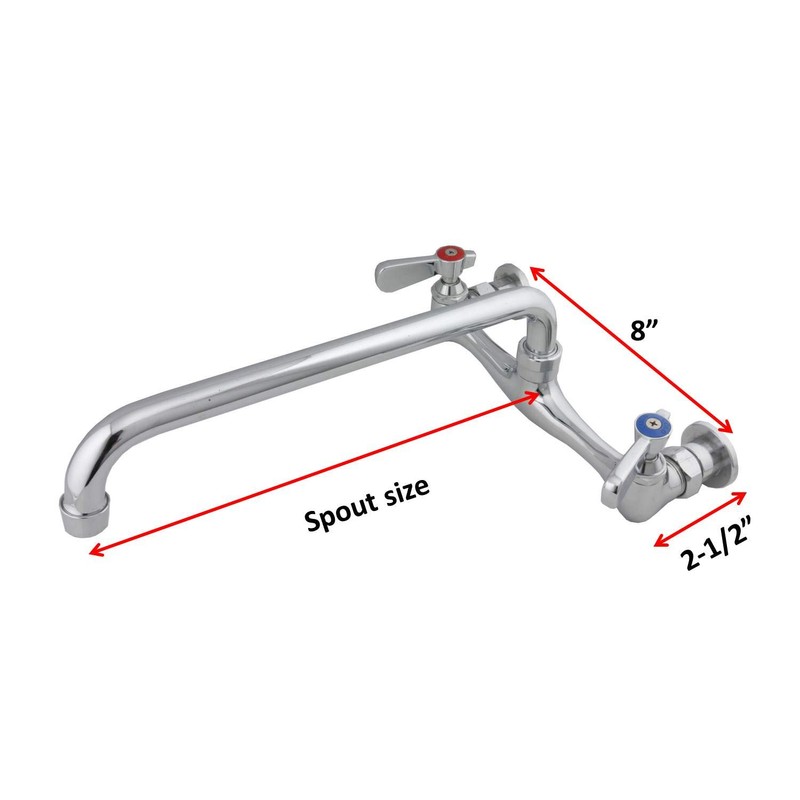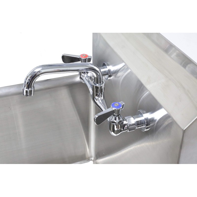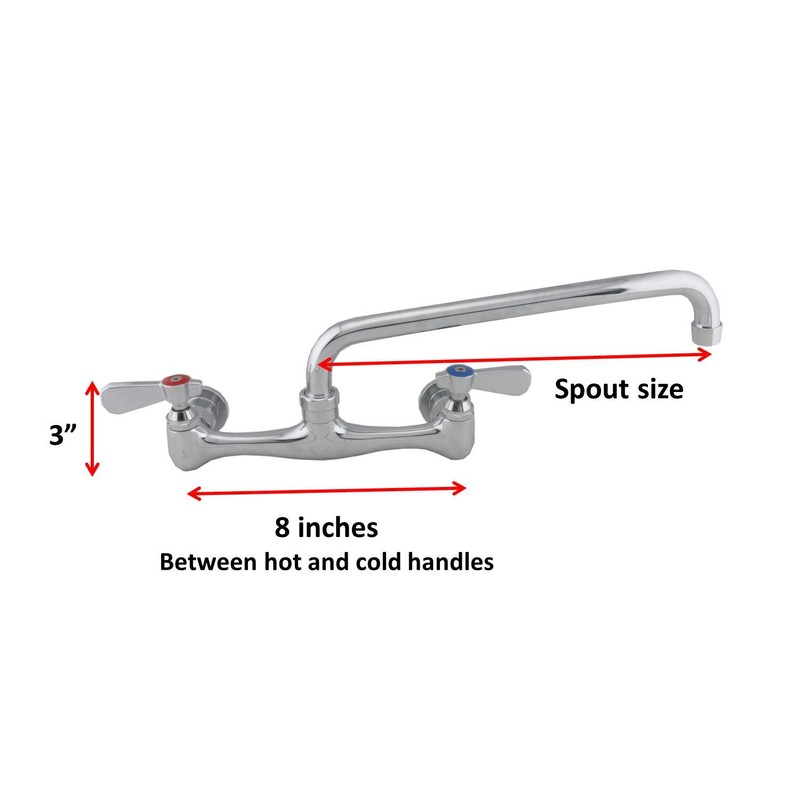 - MODERN DESIGN - Standard 8 inches between hot and cold water inlets for commercial compartment sink. ½” NPT female water inlets. Built with heavy duty brass construction to withstand hot and cold water, a polished modern chrome body that’s design for a better performance and dependability.