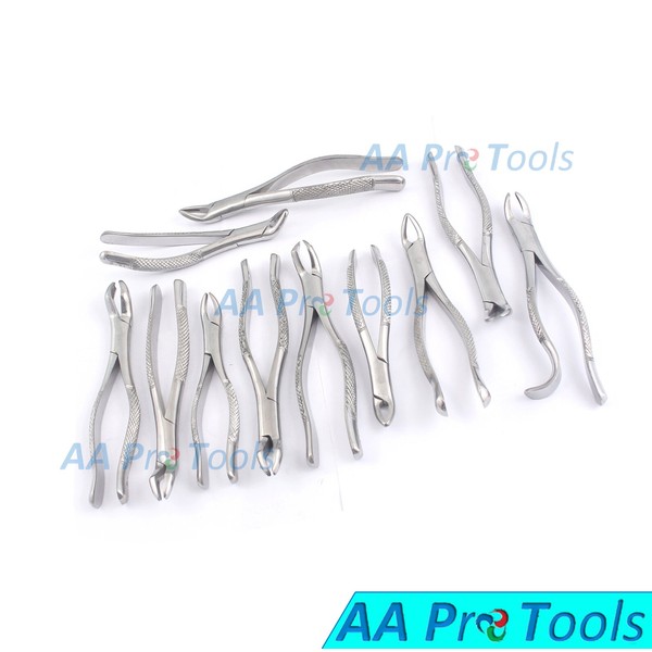 - AA PRO NEW GERMAN GRADE STAINLESS STEEL SET OF 11 EACH EXTRACTING FORCEPS EXTRACTION DENTAL INSTRUMENTS A+ QUALITY