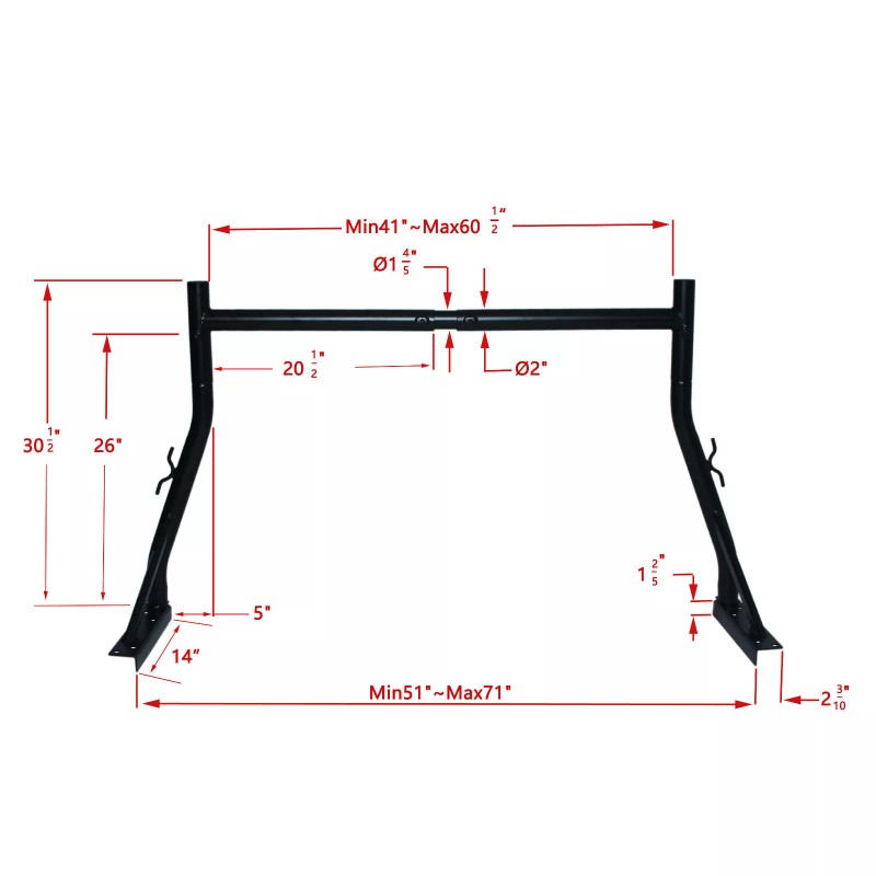 - Our design of the Extendable Top Bars allows the X35-A to fit in different sizes truck beds. The top bars extension ranged from Min 41" ~Max 61".