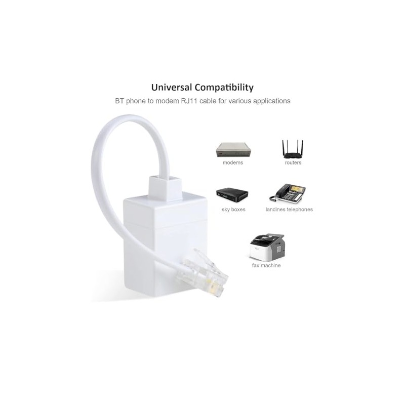 - Universal Compatibility: Designed to connect a wide range of devices, including telephones, modems, landlines, routers, printers, and fax machines, to standard BT sockets without any compatibility issues.