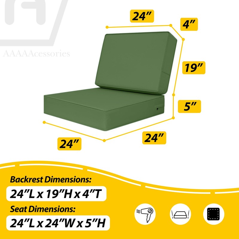 - About Size: Seat: 24L×24W×5H inches, Backrest: 24L×19H inches (tolerance: 0.5"). Measure your furniture before ordering. Cushions are compressed and may look bigger/thinner. Let them rebound for a few days or use a hair dryer to fluff faster