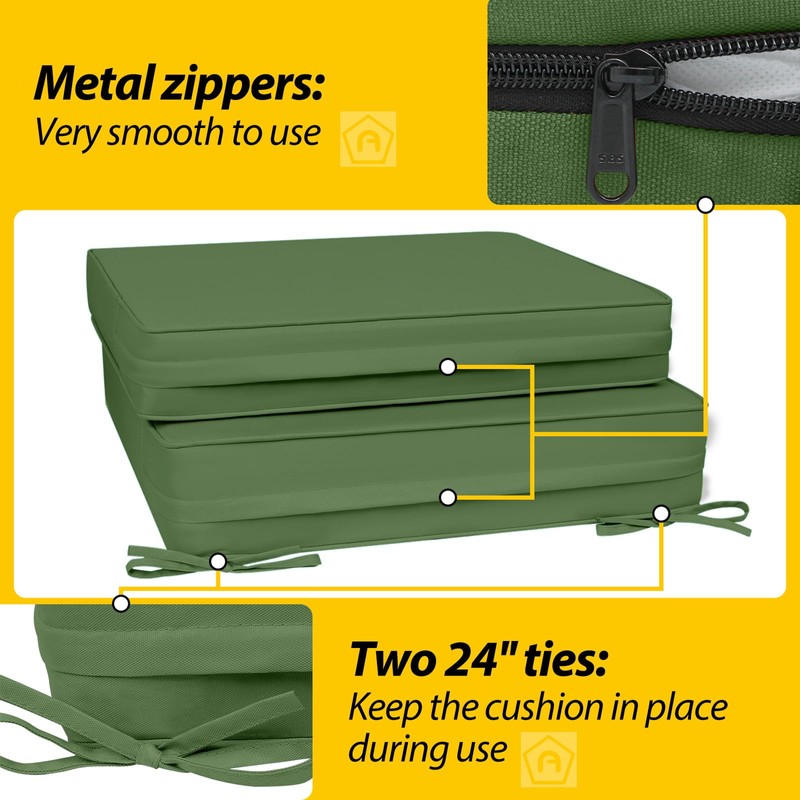 AAAAAcessories Outdoor Deep Seat Cushions, Foam Pillow, Waterproof, Fade-Resistant Patio Furniture Replacement Cushions, 24" x 24" x 5", Set of 2, Dark Moss Green
