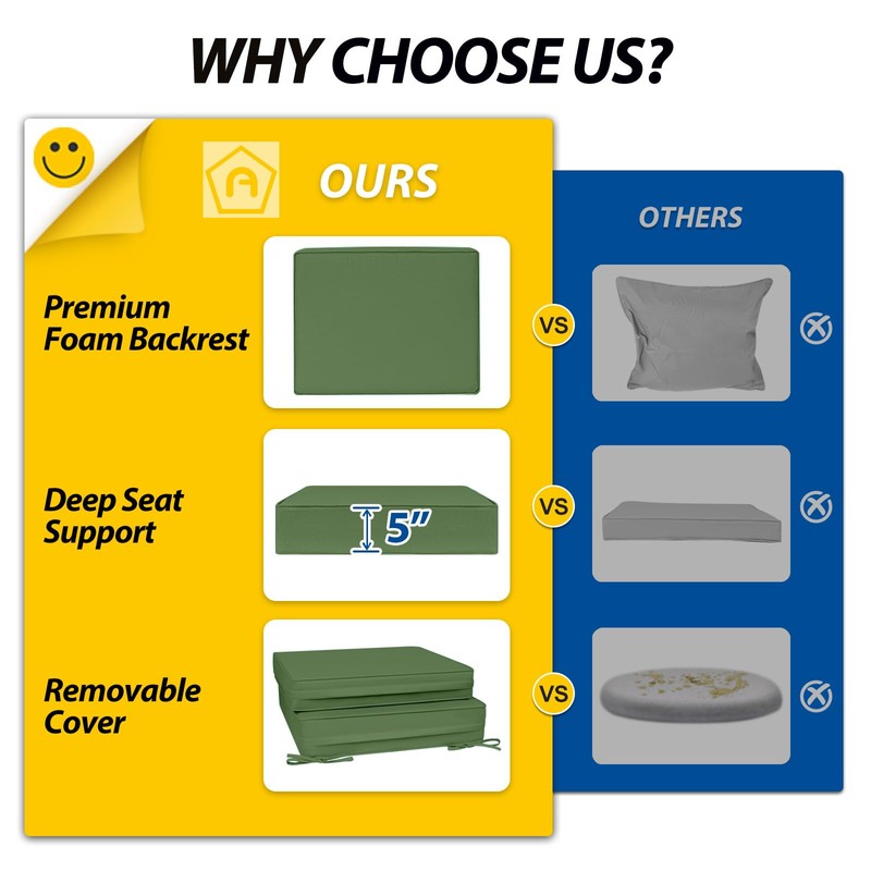 - Wide Use & Tips: Our outdoor deep seat cushions are ideal for gardens, patios, balconies, decks, and more. They fit loveseats, couches and rockers. Foam inserts and covers are packed separately—double-check both. Easy assembly required