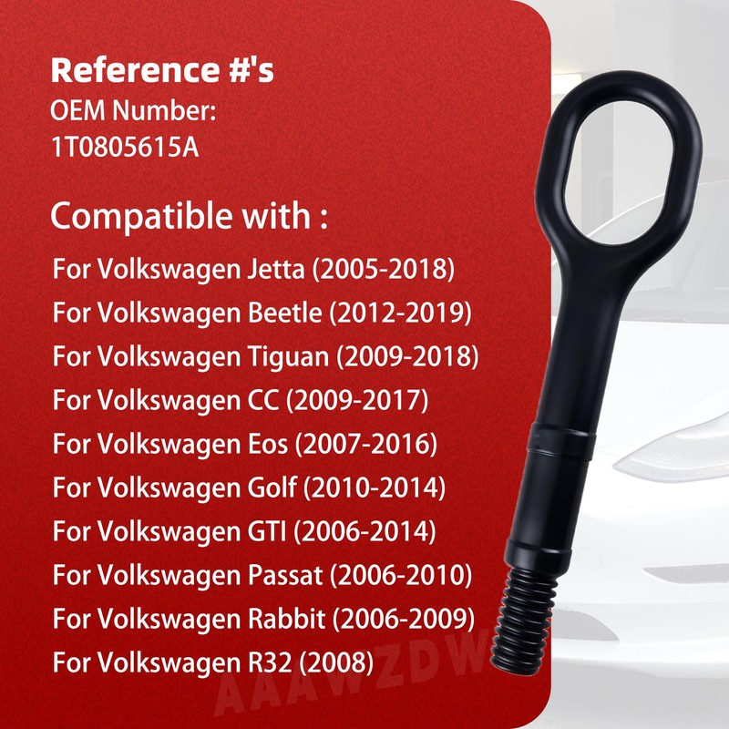 - [Easy installation]:For Volkswagen Tow Hook Just screw on and apply, simple and quick to install, making towing the car safely without damaging the front bumper