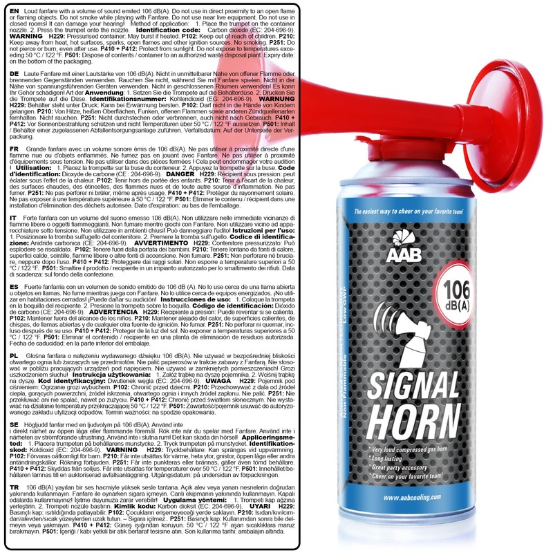 AAB Signal Horn 2 x Compressed Air Fanfare Non-Flammable 106 dB(A), Up to 120 Signals, Fanfare for Football Euro 2024, European Championship, Gas Horn, Compressor Horn, Stadium Horn, Football Trumpet,