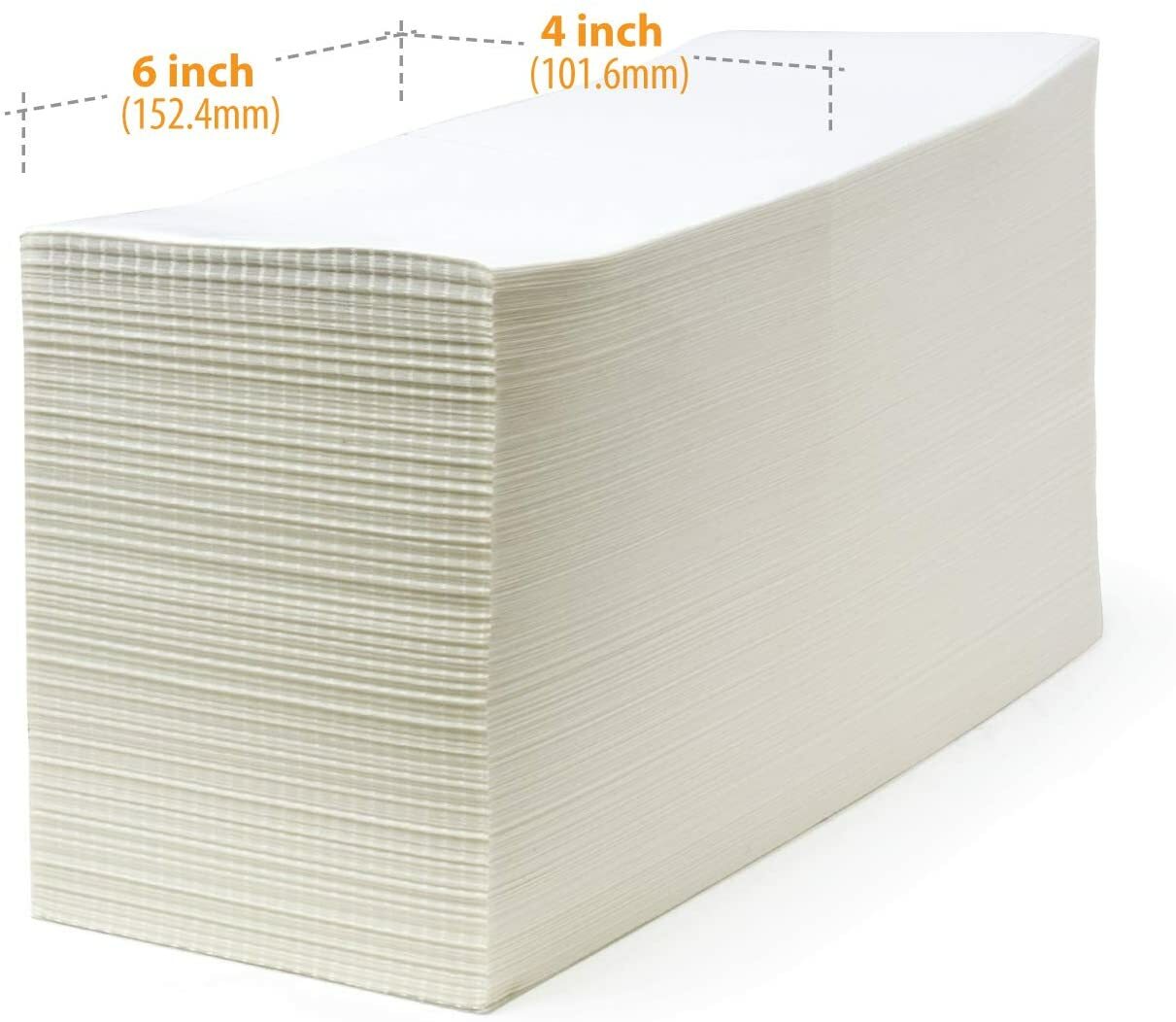 - 4" x 6" . 4000 shipping labels per stack. Packed in a kraft carton to prevent damage.