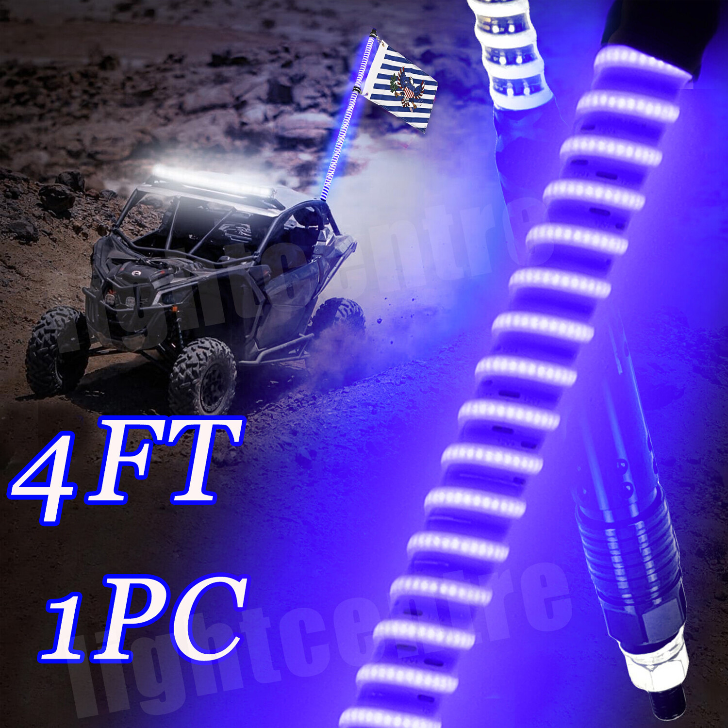 Aaiwa 4ft COB Blue LED Lighted Antenna Light Whip Flag Pole For Polaris RZR UTV ATV