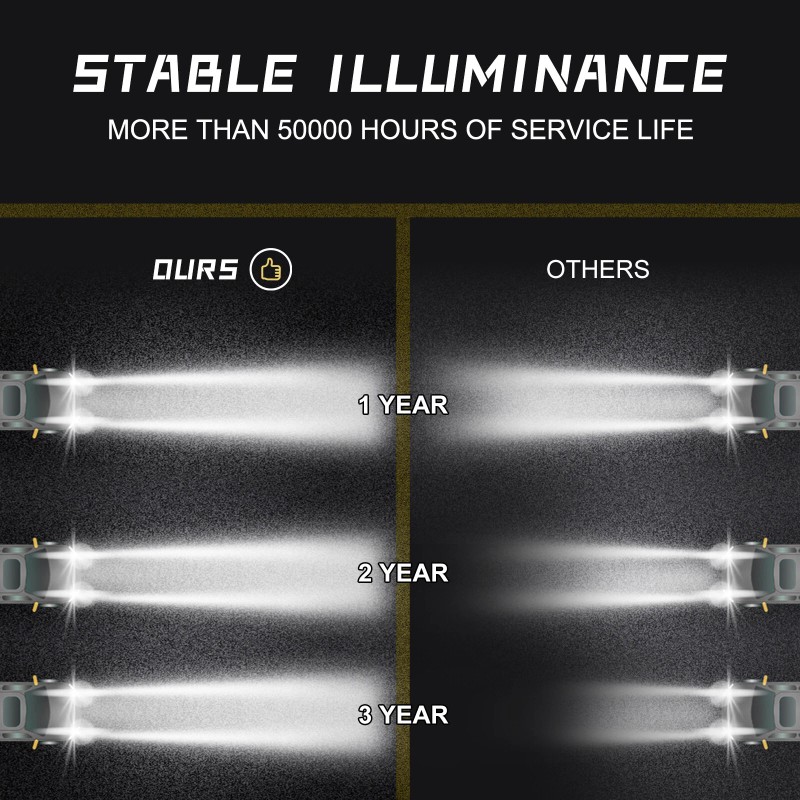 - Easy installation: Plug and Play, the headlights are with standard 3-Pin plug (H4 plug). IP68 waterproof rate, special heat sink design for efficient cooling dissipation.