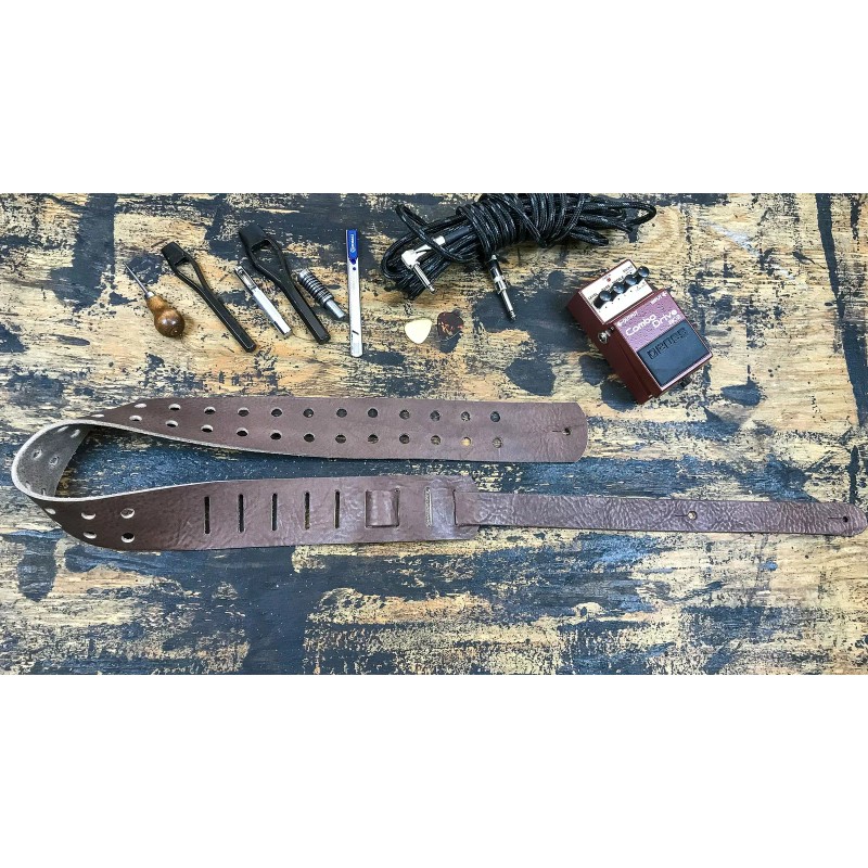 AAKKORD BY FUNK PLUS 2 1/4" Wide Double Hole Dark Brown Saddle Cowhide Classic Guitar Strap