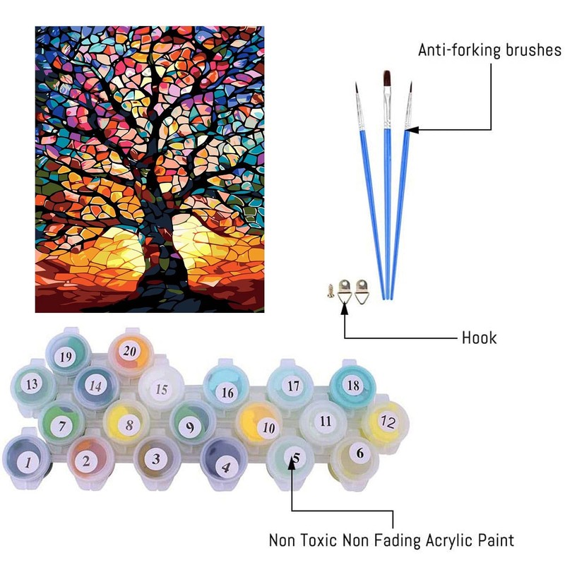 - CRAFT YOUR OWN PAINTING - DIY Stained Glass Tree paint by number for adults is easy and fun. Through easy-to-understand instructions, paint by number sets finish painting beautiful works. Anyone can complete an exquisite artwork independently, which is very suitable for beginners.