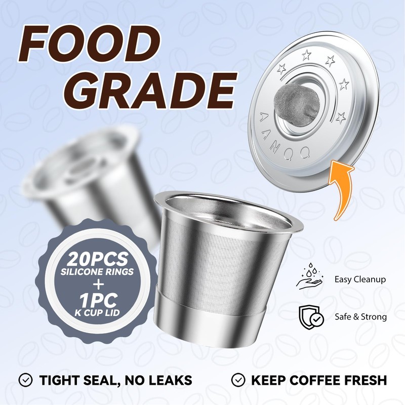 Enhance your coffee brewing experience with our K cup Lid + 20 Silicone Sealing Rings set, specifically designed for Keurig 1.0 compatible reusable K cups. This replacement kit offers a simple and effective solution to keep your K cups functioning like new.