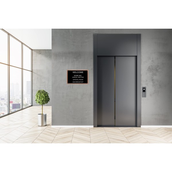 - A classic black felt covered board that is precision grooved on 1/4" centers to accept universal quick change letters handsomely framed in solid red oak. Size 12"Hx18"W