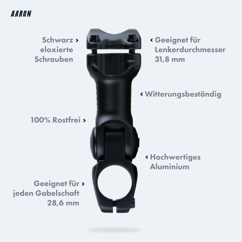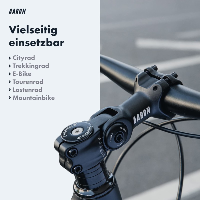 AARON Flex Bicycle Stem, Height-Adjustable Handlebar Stem, Stem for Ergonomic Sitting Posture, Handlebar Raiser for Bicycle Handlebars, Suitable for Trekking Bikes, E-Bikes, City Bikes, City Bikes,