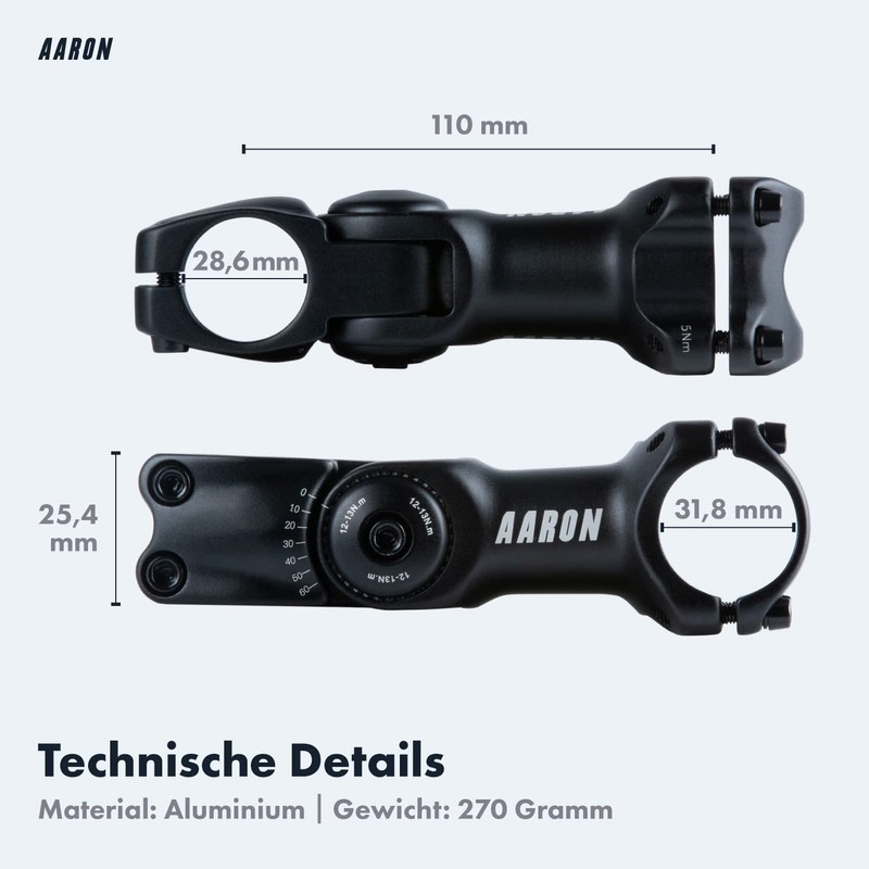 • Clean environment: AARON products are characterised by a long service life. The high-quality AARON Flex becomes a faithful, long-term companion. In addition, the handlebar stem is even plastic-free in a cardboard box to protect the environment.