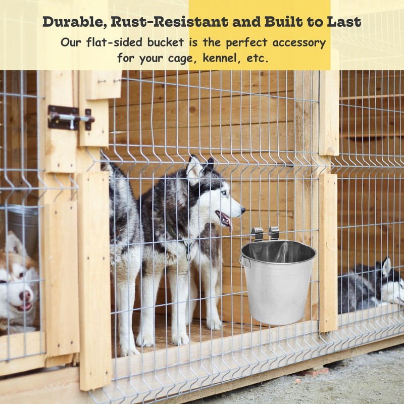 • Durable & Rust-Resistant: Made from high-quality stainless steel, this 2-quart bucket is built to withstand daily use and resist rust, ensuring long-lasting durability for food and water.