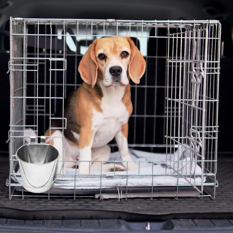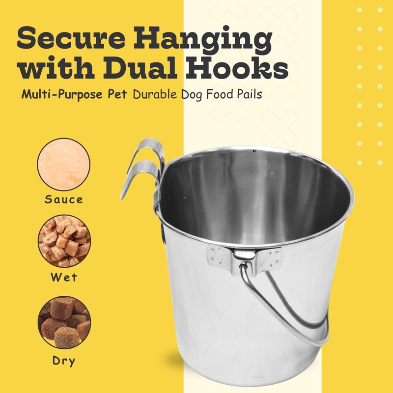 • Dual Hooks for Easy Hanging: Features two sturdy hooks, allowing you to securely hang the bucket on crates, kennels, or cages for a mess-free, convenient feeding experience.