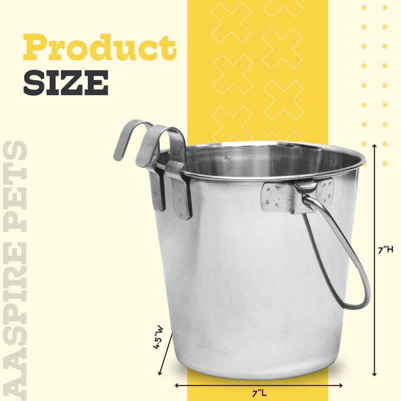 AASPIRE PETS Heavy Duty Stainless Steel 2 Quart Flat Side Bucket is the perfect solution for feeding and watering your pets with ease. Built from high-quality stainless steel, this durable bucket is designed to withstand daily use, offering long-lasting reliability in any environment. Whether you're using it in kennels, cages, or critter crates, its 2-quart capacity provides ample space for food or water. Featuring dual hooks for easy hanging, this versatile bucket can be securely attached to your pet's crate or kennel, preventing spills and messes. The flat side design ensures a space-saving fit, while the smooth surface is easy to clean, keeping your pet’s area neat. Ideal for dogs, cats, and small animals, this multi-purpose bucket makes feeding and watering hassle-free.