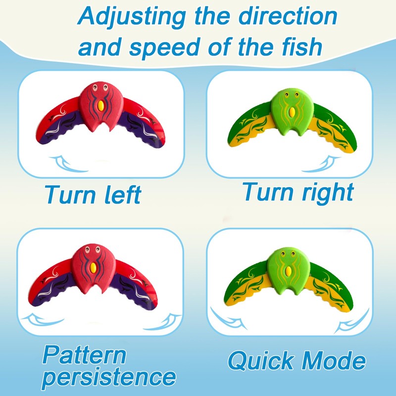 3. Swimming mode: the body of the fish is in the air and is placed in the water to float naturally, turn in the water, turn left and turn right.