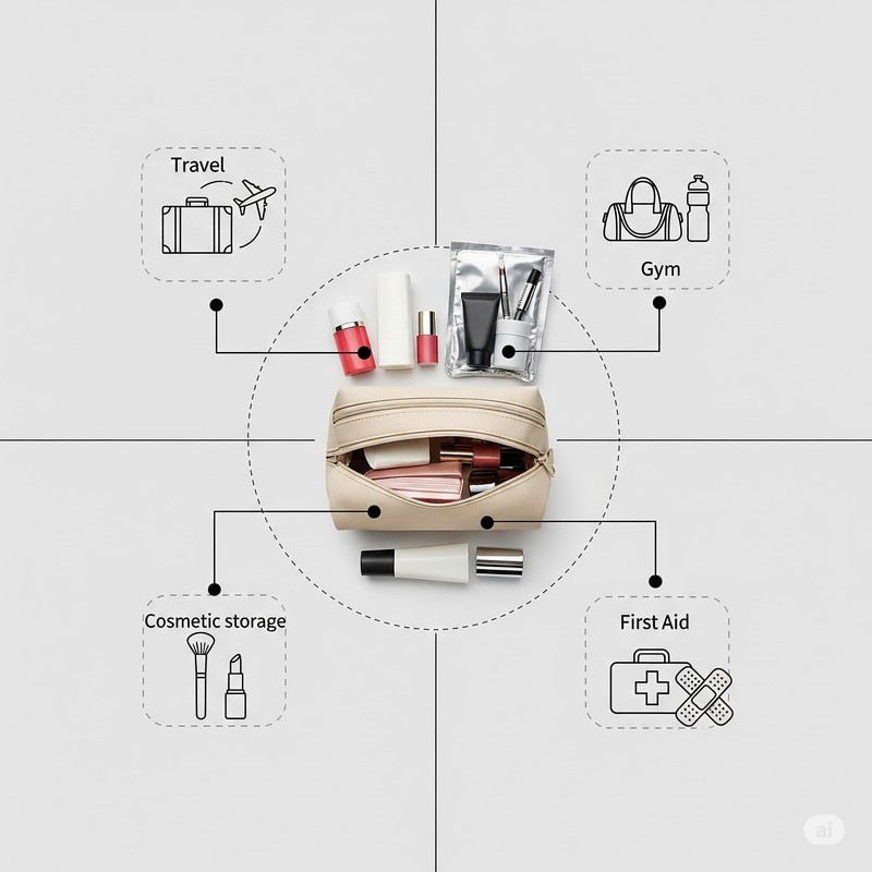 - Zipper Closure & Waterproof Lining – Includes a secure top zipper and an easy-to-clean inner lining that helps protect against spills, making it ideal for storing liquids or cosmetics.