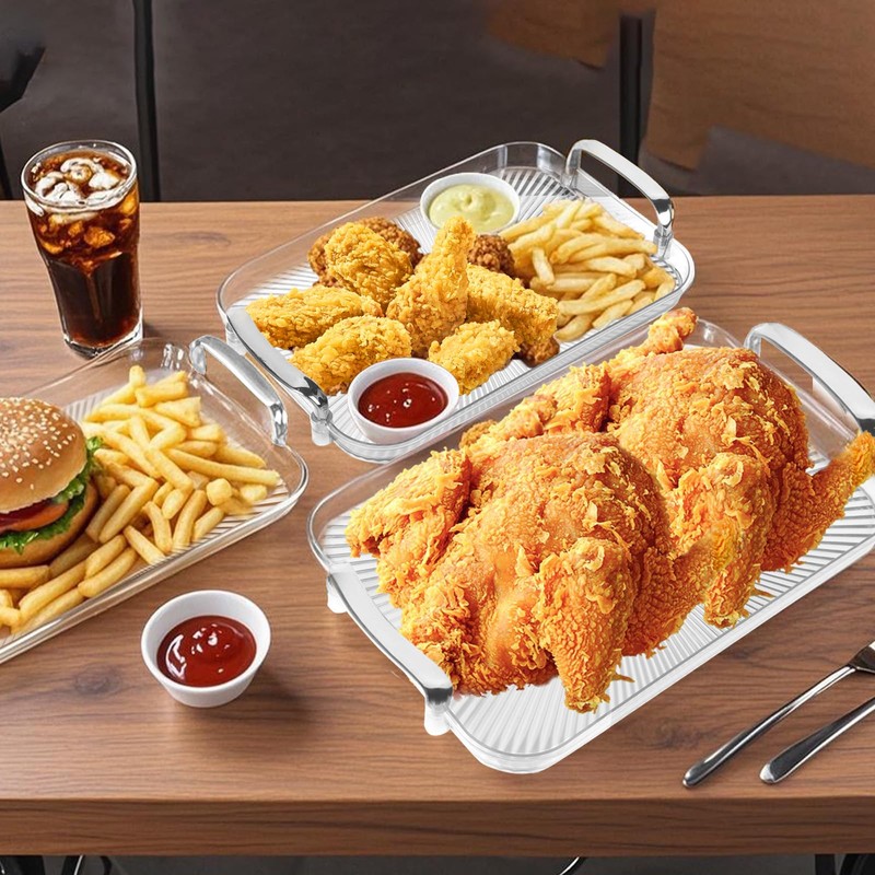 Aayoruro Serving Tray with Handles Set of 3 Rectangular Large Serving Platters 16.5/14.9/13.2 Inch White Plates for Dinner, Party, Entertaining, Transparent